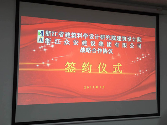 集團(tuán)與浙江省建筑科學(xué)設(shè)計(jì)研究院建筑設(shè)計(jì)院簽訂戰(zhàn)略合作框架協(xié)議浙江眾安建設(shè)集團(tuán)有限公司 發(fā)布時(shí)間:2017-01-23   點(diǎn)擊瀏覽:6033次