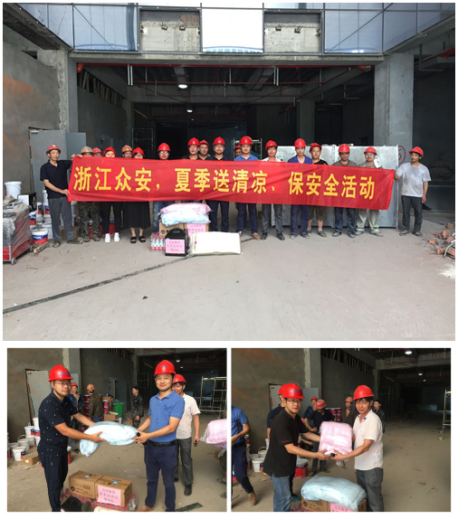 近來,杭州市持續高溫,室外氣溫一直徘徊在40度上下,地面溫度達到50度左右,這無疑是對建筑工地上一線工人的嚴峻“烤驗”。7月26日下午,集團華總、江總等與集團工會余主席等一行人深入項目建設工地現場,代表眾安建設集團向堅守崗位的一線工作人員表示慰問,為建筑工人發放了防暑降溫藥品、清涼油、洗衣粉、毛巾等物品。