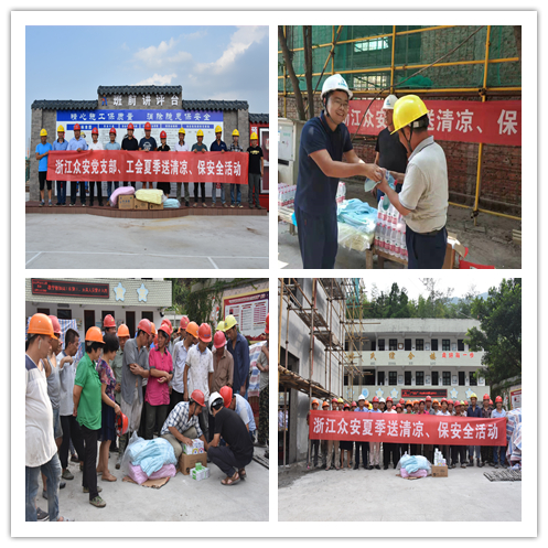 自8月開始,集團(tuán)各級(jí)領(lǐng)導(dǎo)帶著滿滿的問候,深入項(xiàng)目建設(shè)工地現(xiàn)場(chǎng),先后前往貴州、河北、江西、溫州、嘉興、杭州等各個(gè)項(xiàng)目部,代表眾安建設(shè)集團(tuán)向堅(jiān)守崗位的一線工作人員表示慰問,為建筑工人發(fā)放防暑降溫藥品、清涼油、毛巾等物品。