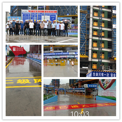 與會人員首先現(xiàn)場觀摩了項(xiàng)目標(biāo)準(zhǔn)化管理方面的推廣應(yīng)用成果及主體結(jié)構(gòu)實(shí)體質(zhì)量效果。項(xiàng)目管理在各個方面存在可圈可點(diǎn)之處:如項(xiàng)目應(yīng)用定型化設(shè)施、可重復(fù)利用設(shè)施覆蓋面較廣;工藝樣板集中展示區(qū)和安全體驗(yàn)區(qū)內(nèi)容較為豐富;合理劃分了場地功能區(qū)和標(biāo)識了風(fēng)險(xiǎn)級別區(qū);場地硬化和綠化做法比較考究;黨建工作、民工學(xué)校和班前講評活動開展務(wù)實(shí)有效取得了示范效果;企業(yè)文化宣貫和項(xiàng)目文化建設(shè)氛圍較好等。