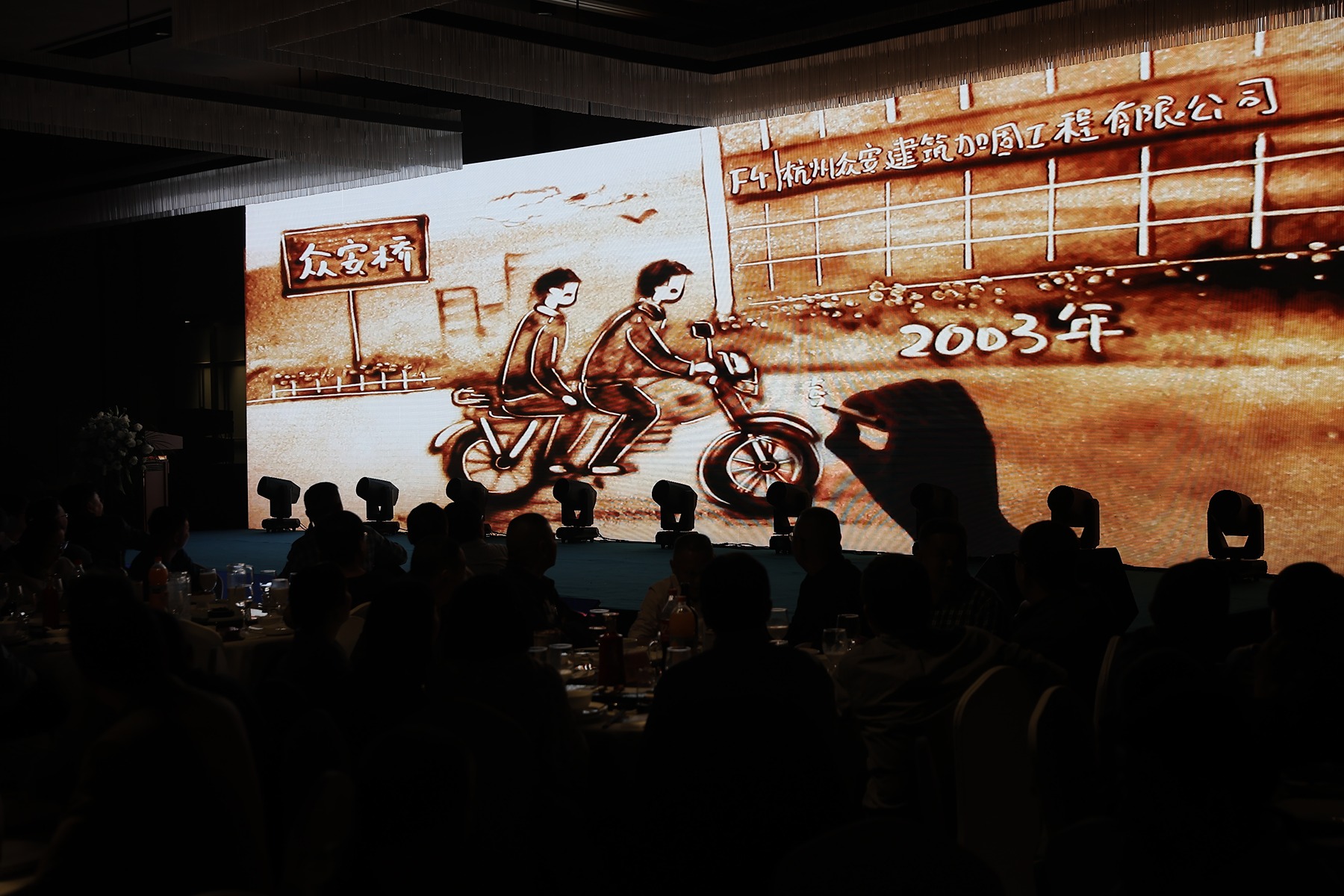 下午6時18分,在萬眾矚目和熱切期盼中,一場驚艷全場的“沙畫?記憶之花”的表演,帶我們回到了2003年那個夢想開始的地方,浙江眾安建設集團二十年變遷之路栩栩如生地呈現在眼前,也代表20周年慶典晚會璀璨開啟。