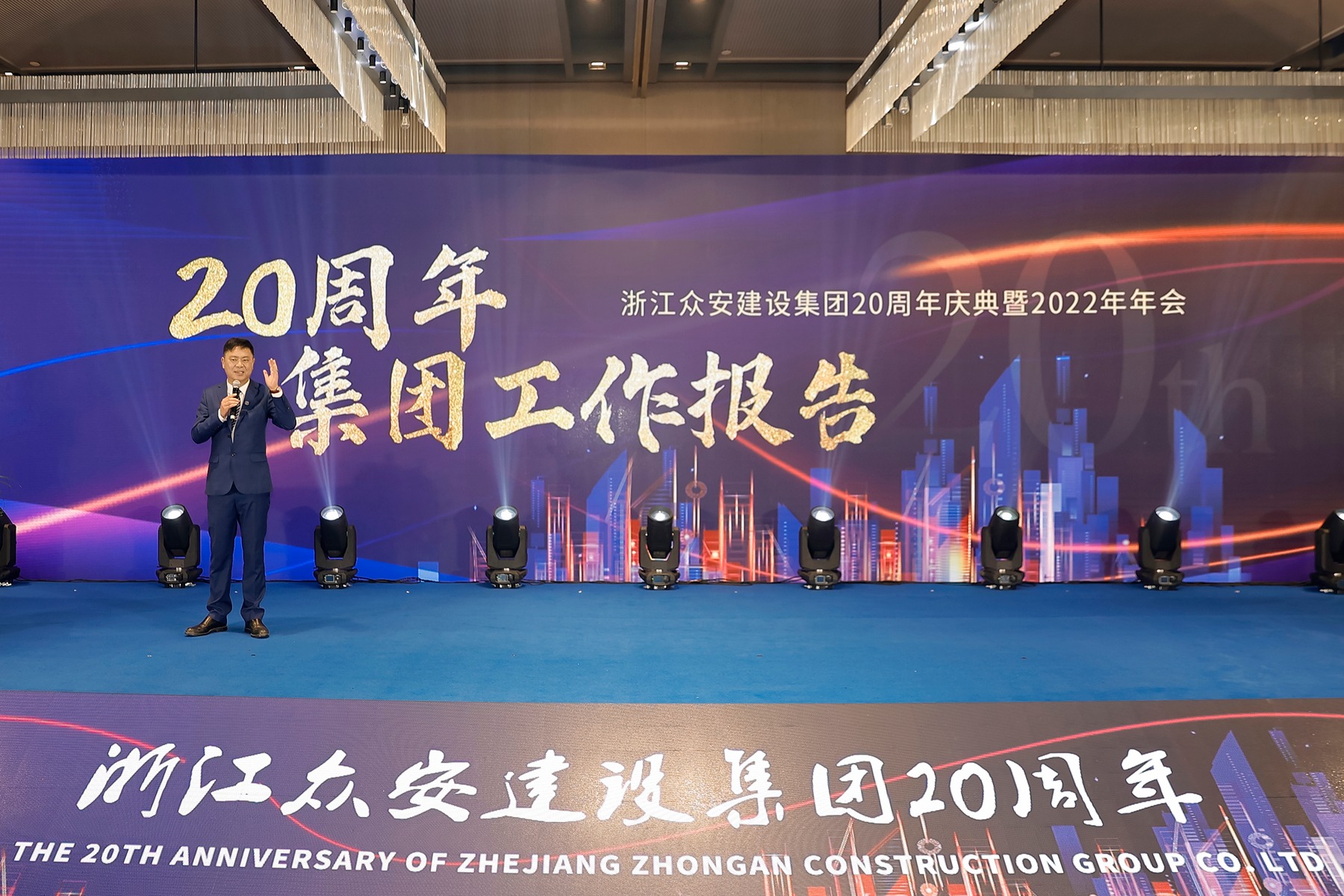 匠心二十載,攜手新征程。2023年4月12日,浙江眾安建設集團20 周年慶典暨 2022 年年會在杭州中豪國際大酒店 3 樓國際廳隆重舉行。