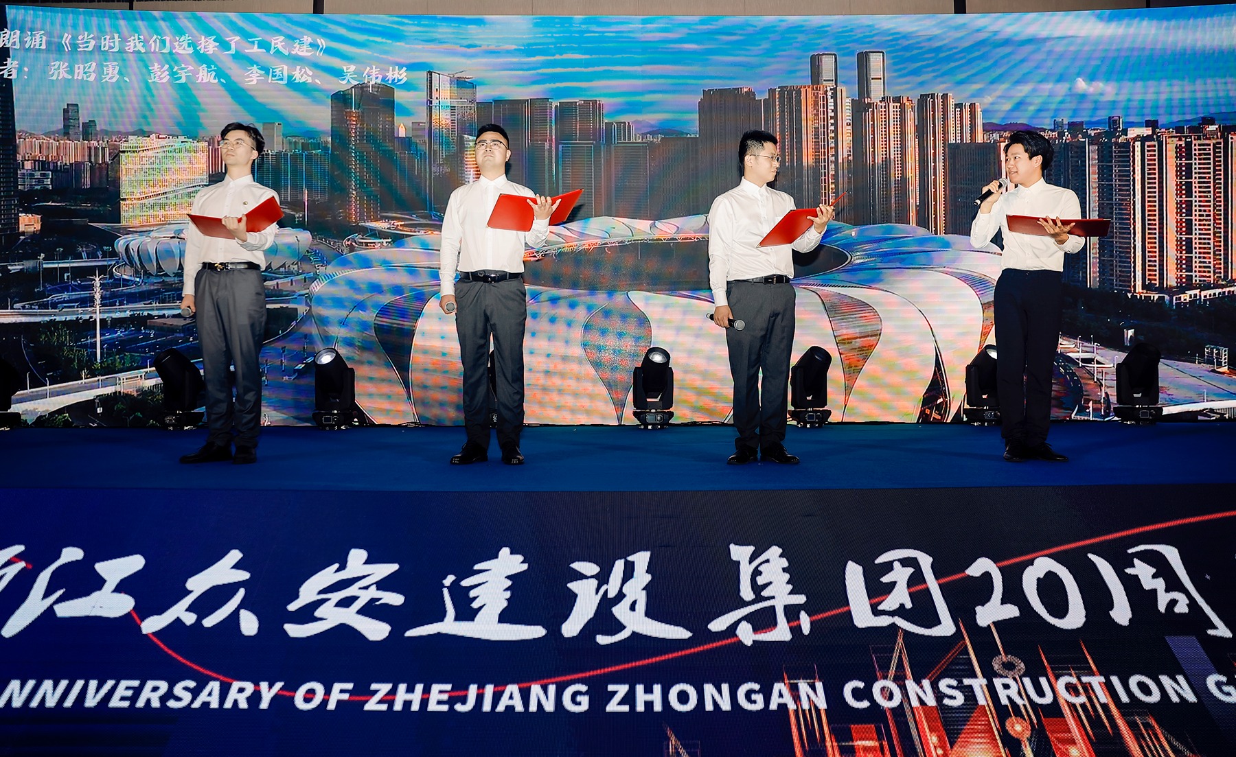 會議伊始,婉轉悠揚的音樂引出聲情并茂的朗誦,隨后全體與會人員一同觀看了嶄新的企業宣傳片,齊唱眾安之歌,由此正式拉開浙江眾安建設集團20 周年慶典暨 2022 年年會序幕。