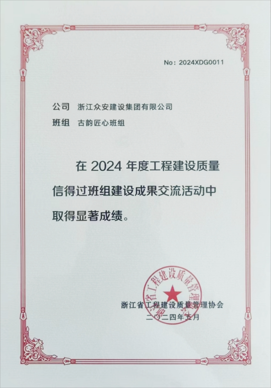 浙江眾安建設集團有限公司古韻匠心班組成立于2016年10月,班組成員9人。主要負責公司城市更新、古建筑板塊業(yè)務的加固改造、裝修等建設施工任務。先后完成蒼南縣霞關風情小鎮(zhèn)老街改造提升項目工程總承包、臨安錦城街道金盾花園、錦福新村舊改項目工程總承包(EPC)、金華鐵路文化公園內八棟歷史性保留建筑加固改造等項目施工。截止2023年底已累計完成改造面積32萬平米,累計施工產值5.3億元。