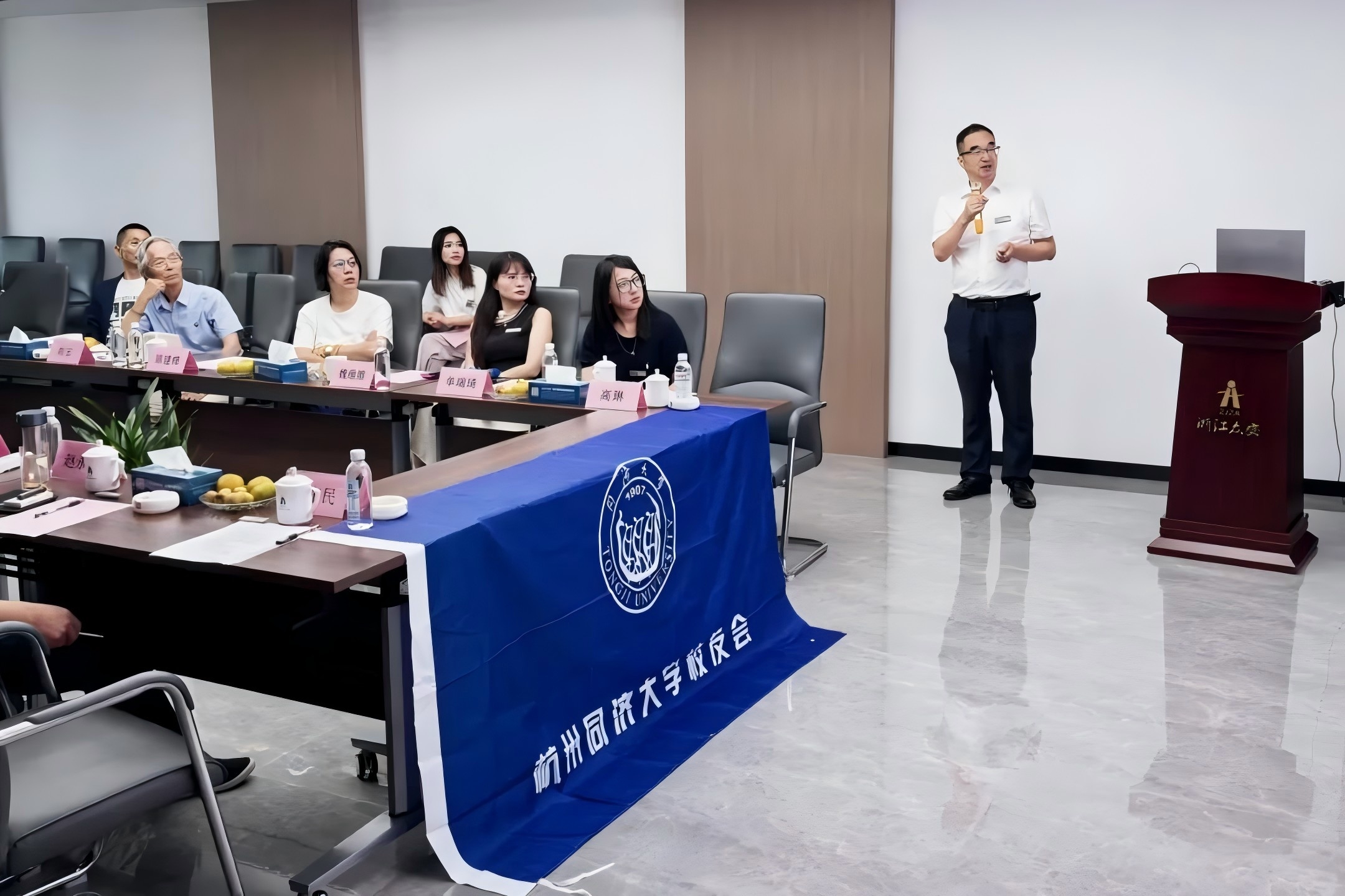 最后,浙江眾安建設集團董事長周世安校友進行總結發言,回顧昔日的求學經歷,并再次號召廣大校友同舟共濟,團結一致,為杭州城市更新及古建筑保護貢獻同濟智慧、同濟力量。