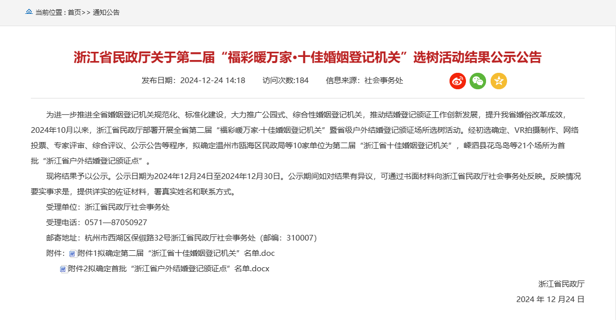 近日,浙江省民政廳正式對外公布了第二屆“福彩暖萬家·十佳婚姻登記機關”的評選結果。在此次活動中,由眾安設計、施工的五個婚姻登記項目榮獲殊榮,分別是紹興市上虞區民政局、泰順縣民政局、余姚市民政局、桐鄉市民政局、臺州市黃巖區民政局,充分體現了我司在推動社會民生項目方面的持續努力與卓越成就。